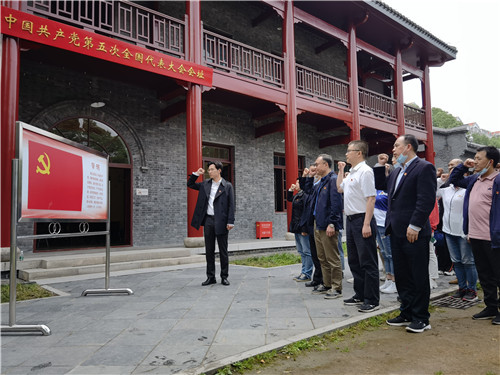 “我志愿加入中国共产党,拥护党的纲领……”,在青年党员王安杰的带领下,党员同志们在中共五大会址纪念馆里重温入党誓词,面对党旗铿锵宣誓,进一步坚定理想信念,牢记入党初心。
