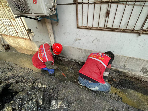 1月18日,施工人员对管道站在接近膝盖深的冰冷污水中,不够恶臭与脏污,连续奋战10个多小时,对该处主下水管道进行了开挖更换,解决了堵塞异味问题。还通过反复多次协商,与排放油污商户达成一致,彻底清除了堵塞源头。
